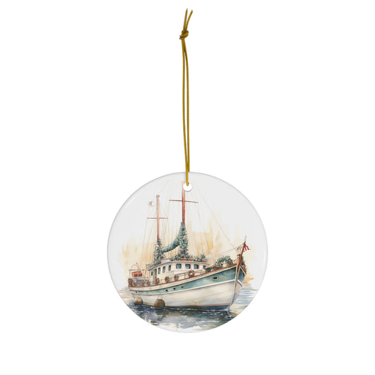 Coastal Skiff Boat Christmas Tree Ceramic Ornament