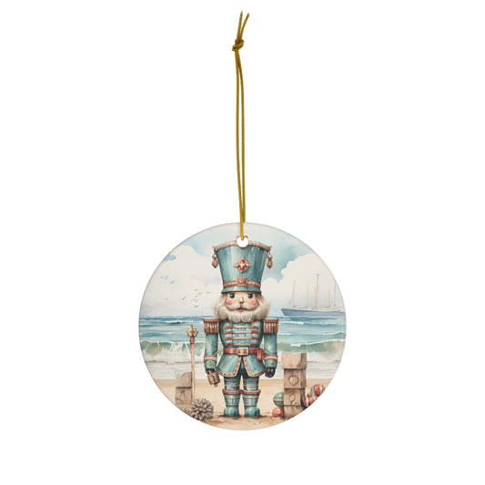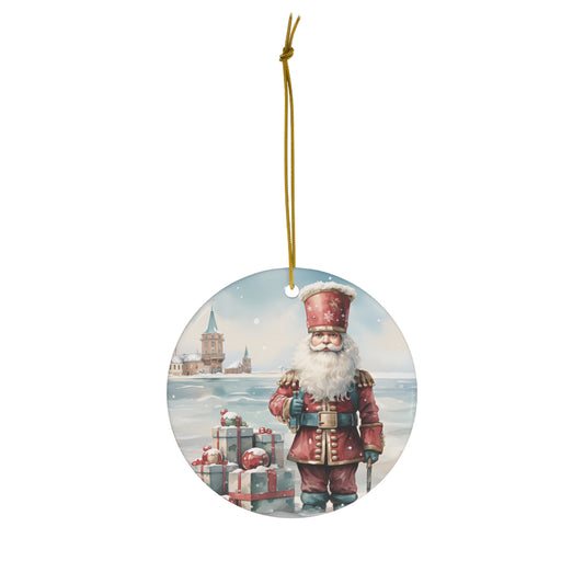 Snowy Toy Soldier Christmas Ceramic Ornament