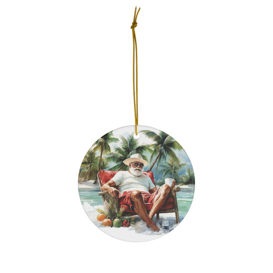 Santa Relaxing at the Beach Christmas Ceramic Ornament