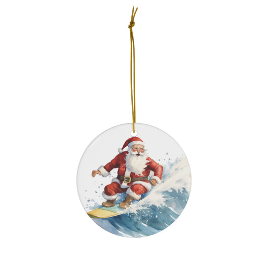 Santa Riding the Waves Surfing Christmas Ceramic Ornament