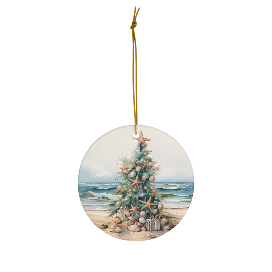 Starfish & Shell Decorated Tree Christmas Ceramic Ornament