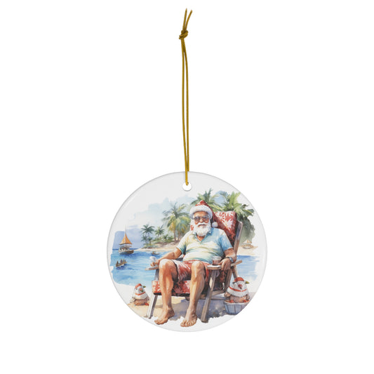 Santa Chilling On the Beach Christmas Ceramic Ornament