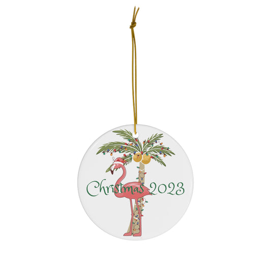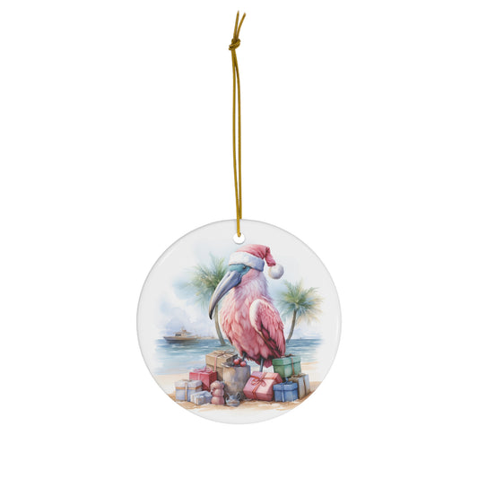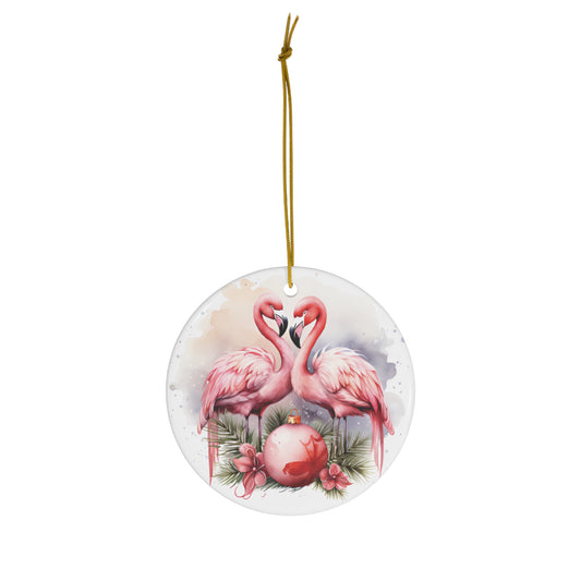 Pink Holiday Flamingos Christmas Ceramic Ornament