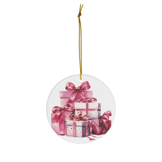 Pink Holiday Gifts Ceramic Christmas Ornament