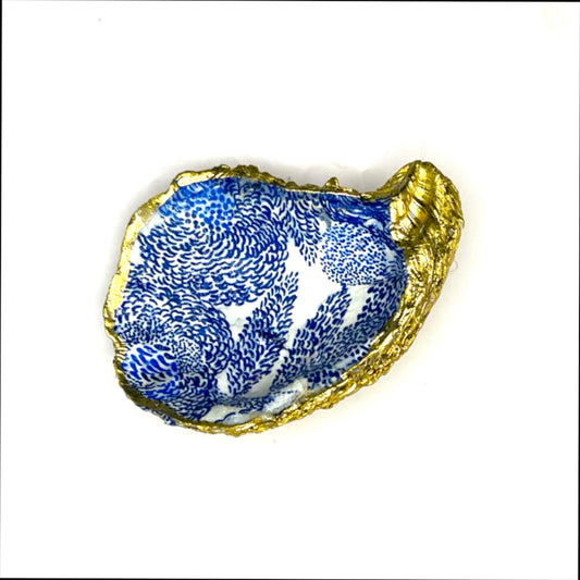 Gilded Blue Abstract Leaf Oyster Shell Ring Dish and Tray