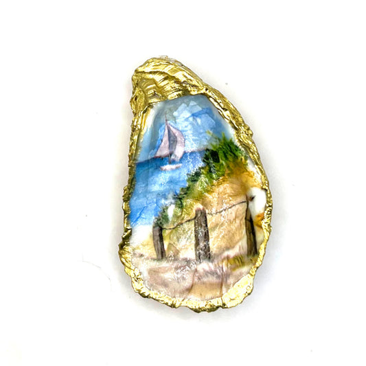 Gilded Sailboat on the Sea Oyster Shell Ring Dish and Tray