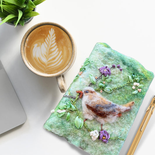 Felted and Ribbon Embroidered Journal - Birds and Flowers