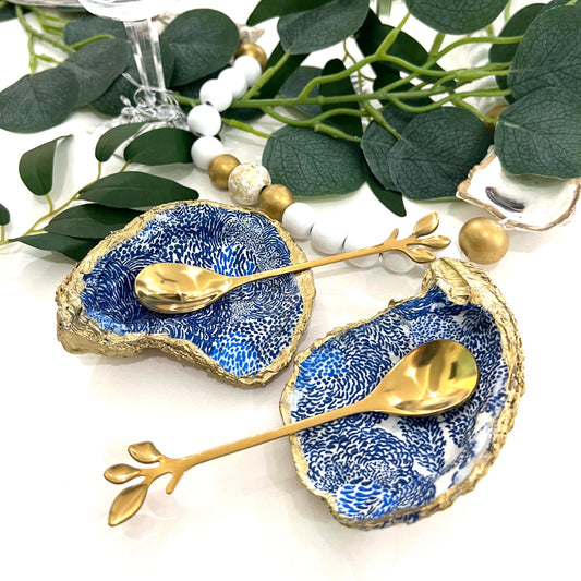 Gilded Blue Abstract Flowers Oyster Shell Salt and Pepper Cellars